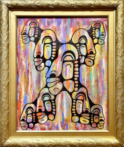 Les œuvres présentées sont des visages stylisés, monoformes, oscillant entre le profil et la frontalité. Ce basculement visuel engage le spectateur dans une expérience de double regard : ce que l’on observe nous observe à son tour. Ainsi, chaque figure devient miroir, chaque ligne un écho. La réversibilité ne se limite pas ici à un procédé plastique - elle devient principe poétique : celui d’un monde où l’émotion circule à double sens, comme une vibration partagée entre l’artiste et le regardeur.